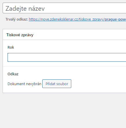 Vyplňujeme název, rok a přidáme soubor s tiskovou zprávou.