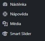 Nápověda tedy tato stránka obsahující často kladené otázky, dále obsahuje Smart Slider (tedy hlavní slider na HP) viz Úprava slideru na HP, a galerii všech médií Média (návod v přípravě)