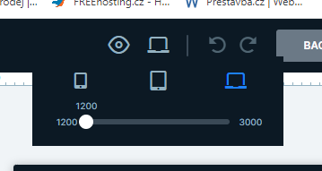 Kulatá šipka směrem vlevo a vpravo se používá pokud se potřebuje vrátit o krok zpět nebo v před při editaci. Symbol počítače pak umožní náhled na slide na různých zařízeních.